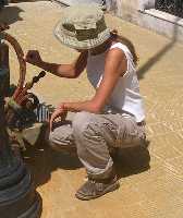 Restaurar y conservar el patrimonioEn el Cementerio de Recoleta se siguen ejecutando obras de restauración que se vienen llevando a cabo desde el año 2002.La importancia de restaurar y conservar el patrimonio cultural de este Cementerio, donde descansan importantísimas personalidades de la vida nacional, radica en que es uno de los más importantes del mundo, cada vez más visitado por turistas, que se sienten maravillados con las bellísimas esculturas, las puertas, los vitrales y la gran simbología expresada a través del arte, pero fundamentalmente es una manera de honrar la memoria de gran parte de nuestra Historia que descansa en este lugar. Esta semana, Conozca Buenos Aires encontró a Carla en plena labor de recuperación y restauración. En esta oportunidad la joven estaba trabajando en el sepulcro de Juan Martín de Pueyrredón. El paso del tiempo había deteriorado el lugar donde descansan los restos del patriota y debido a que el 13 de marzo de 1850 se cumplirán 156 años de su muerte, se está restaurando su última morada. Carla nos explicó que dentro del listado de sepulturas que serán restauradas, se da prioridad de acuerdo al deterioro, al diagnóstico que se realiza en cada caso y una vez que se completa esa etapa, donde se detecta la patología que sufren los sepulcros, entonces se actúa en consecuencia. Algunas veces se detectan hongos y se procede a detener su expansión, otras hay fisuras, crecimiento de yuyos o plantas que ocasionan ciertos perjuicios o provocan riesgos de derrumbe, entonces después de una evaluación, se intervienen en orden de prioridad. En el caso de la sepultura de Pueyrredón, se han limpiado los mármoles recuperando su color genuino, y ahora encontramos a la joven con un bisturí, quitando óxido y capas de pintura de las rejas que circundan su perímetro, para pasar antióxido y luego pintarlas de color verde inglés. ![]() Es maravilloso ver la pasión y el entusiasmo que pone gente tan joven para contribuir a la preservación del patrimonio que nos pertenece a todos los argentinos y del cual debemos enorgullecernos.