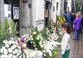 Por la mañana temprano se llevó a cabo un oficio religioso en la capilla del Cementerio de la Recoleta, también frente a la bóveda donde descansan sus restos se depositaron gran cantidad de ofrendas florales y el desfile de personas fue incesante durante todo el día, a pesar de las inclemencias del tiempo, muchísimo frío, lluvia y hasta granizo. Por el lugar pasaron militantes peronistas, muchos de ellos improvisaron o leyeron discursos dedicados a la "abanderada de los humildes", pero también pasaron por el lugar numerosos turistas, como ocurre habitualmente, y era muy interesante ver como se sorprendían los visitantes extranjeros al ver la cantidad de flores, retratos, recortes de diarios de la época y todo tipo de demostraciones de afecto hacia Eva Duarte.