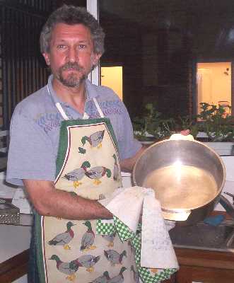 Andá a lavar los platos!La diputada nacional Marcela Rodríguez, fue la creadora de un proyecto que propone modificar el artículo 199 del Código Civil, para que los esposos deban compartir las tareas domésticas y el cuidado de los hijos, es decir, todas las cuestiones que hacen a la convivencia.Para lograr el objetivo, habría que modificar el artículo 199 del Código Civil, que justamente se refiere a los derechos y obligaciones de los cónyuges. Esta iniciativa que fue tratada hace 10 días, obtuvo dictamen favorable de las comisiones de Legislación General y de Familia, Mujer, Niñez y Adolescencia de la Cámara baja y estaría en condiciones de ser tratada en el recinto. El objetivo de que este proyecto se convierta en ley es que el reparto de tareas sea más equilibrado, ya que en la actualidad, la mayoría de las mujeres trabajan afuera y muchas de ellas en dos trabajos diferentes, para contribuir con el presupuesto familiar e incluso, a veces son el sostén de la familia y cuando llegan a sus hogares tienen que hacerse cargo también de las tareas de la casa. Es impensado que se pueda llegar a implementar algo así y difícil de probar el incumplimiento, pero, de convertirse en ley, los señores deberán arremangarse y ponerse el delantal, porque de poder probar la falta de colaboración, se tomaría como causa de divorcio. Antiguamente, vivíamos en una sociedad totalmente machista, donde el hombre salía a trabajar para mantener el hogar y la mujer debía quedarse en la casa a limpiar y criar a los hijos, pero los tiempos cambiaron y esta medida tendería a equiparar las responsabilidades y obligaciones de ambos en lo concerniente a las tareas del hogar, tendiendo a una convivencia más justa. Con respecto al tema hubo diferencias de opiniones a favor o en contra y además se piensa que esta ley tendría solo efecto declarativo, aunque la autora del proyecto dijo que sería una obligación legal que debería cumplirse como cualquier otra. Otro diputado dijo que "sería un reconocimiento para la mujer y además otro avance en la lucha por la igualdad entre ambos sexos". Poniendo un poco de humor a la noticia, que seguramente alegra a todas las integrantes del sexo "débil", también será reconfortante poder conducir un auto y no volver a escuchar esa frase tan machista "andá a lavar los platos", porque ahora, muchos de los que vociferaban eso desde la ventanilla de su auto, vendrán o estarán yendo a realizar esa tarea!!! Mi colega, Luis Leoz, que siempre se jacta de cumplir con todas las obligaciones y leyes vigentes, ante mi desafío acerca de si pensaba también cumplir con esta nueva norma, lo aceptó y se puso "manos a la obra", pero la verdad es que no le tocó en suerte un buen debut. Tuvo que lavar una cacerola que estaba insalvable. Por ahora, Luis está solito, pero se quiere ir acostumbrando para la vida en pareja y seguramente después de esta nota, muchas van a querer tenerlo por esposo. Basta con observar las fotos para ver qué buen amo de casa es. Felicitaciones! Está para un 10 y si no, miren los destellos de la cacerola. Quedó reluciente!