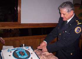 Finalmente, después de despedir la bandera de ceremonia, se dio por finalizado el acto y el comisario invitó a los presentes a compartir un brindis en un salón cercano, donde no faltó una hermosa y riquísima torta, decorada con el escudo de la comisaría.