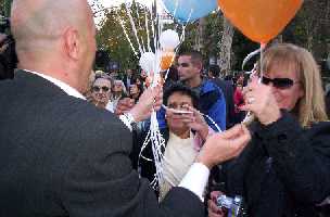 A continuación se procedió al reparto (lo hizo él personalmente) de globos entre los vecinos y posterior suelta de los mismos.