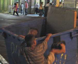 También en la zona de Plaza de Mayo hemos visto gente que duerme en la plaza, en la recova del cabildo y en la Catedral, donde los escalones de acceso y el peristilo quedan en un estado desastroso, sucio, con olor a orín y desperdicios de todo tipo. Otro tanto ocurre en la recova de la avenida Paseo Colón, en la que una seguidilla de hombres, perros, colchones y botellas de bebidas alcohólicas están diseminados en varias cuadras.