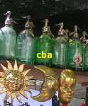 Postales de San Telmo: Carrito pochoclero - Cristalerìa y sifones antiguos en la Plaza Dorrego